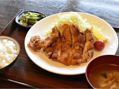 地元長野県産の食材を使った料理で皆様をおもてなしいたします。小海町産の蕎麦粉を使用した小海そばをはじめ、山菜やキノコの数々、山賊焼きやソースカツ丼もご用意しております。